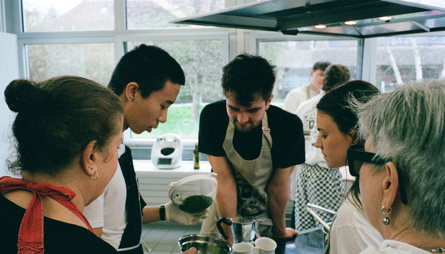 Wir veranstalten spendenbasierte Kochworkshops, bei denen Menschen gemeinsam kochen, lernen und sich austauschen. Von Sammeln bis Fermentieren ist jede Session lokal verankert: Sie verbindet Anwohnende mit lokalen Produzentinnen und Produzenten sowie saisonalen Zutaten.